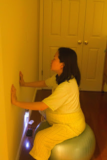 10:00PM: I was progressing into an active labor with the contractions came every 5 - 6 minutes. I tried to sleep on them but couldn't. Since we were hoping to have a natural non-medicated birth, we decided to stay at home some more throughout the active labor -- even though the hospital suggested that we should come when we're at 5-1-1. So I hopped on the gym ball and started rocking to relax.